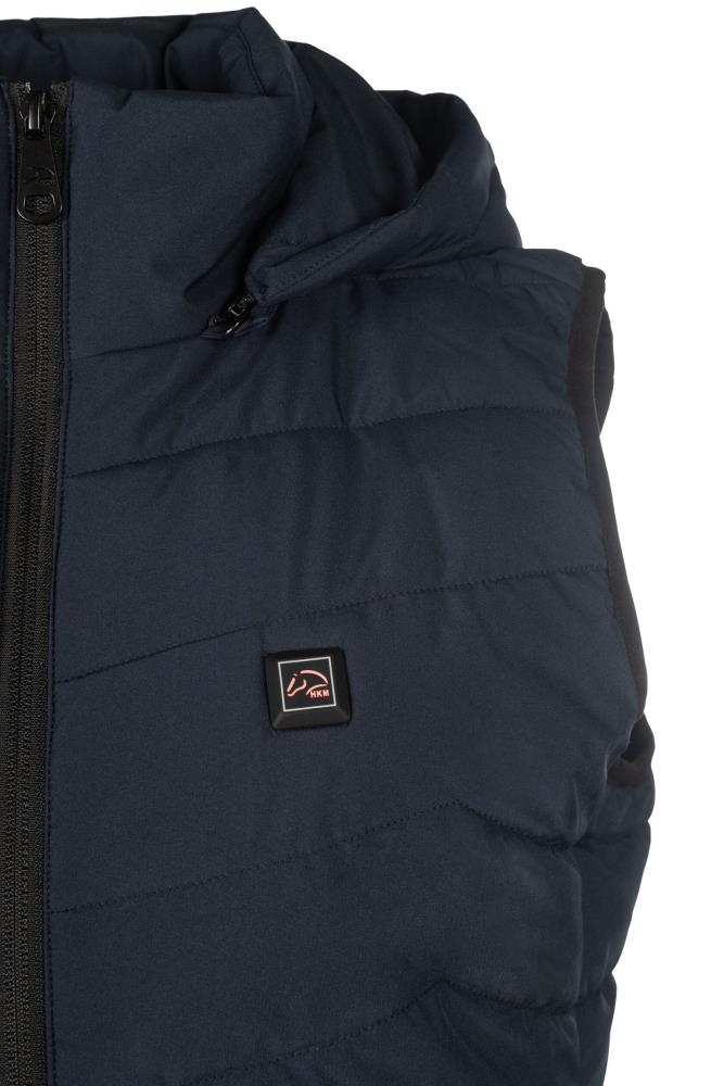 Die Weste ist mit einem Zwei-Wege-Reißverschluss, einer abnehmbaren Kapuze sowie zwei Außentaschen mit Reißverschluss ausgestattet. Erhältlich in den Farben Dunkelblau und Schwarz sowie in den Größen XXS–XXL.