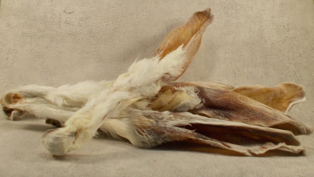 Kaninchenohren mit Fell sind eine natürliche und proteinreiche Delikatesse für Hunde, die zudem durch den Fellanteil eine reinigende Wirkung für den Magen-Darm-Trakt bieten. Ideal als gesunder Snack oder zur Ergänzung der täglichen Fütterung.