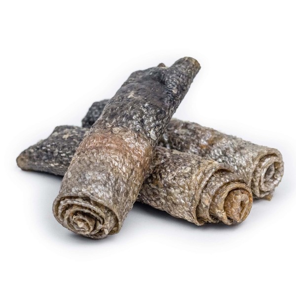 Mit den Lachs Skinrolls bietest Du Deinem Hund einen natürlichen, proteinreichen und besonders schmackhaften Kausnack aus reiner Lachs‑Haut.